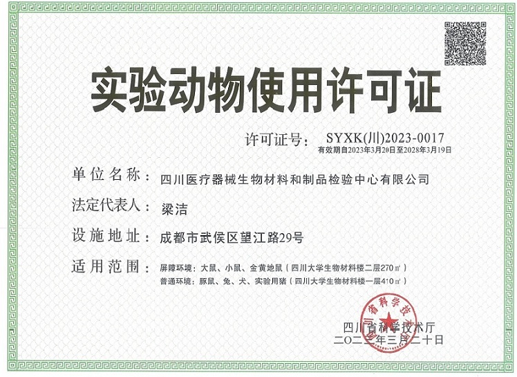 实验动物使用许可证 | 四川省科学技术厅 | 2028-03-19 |